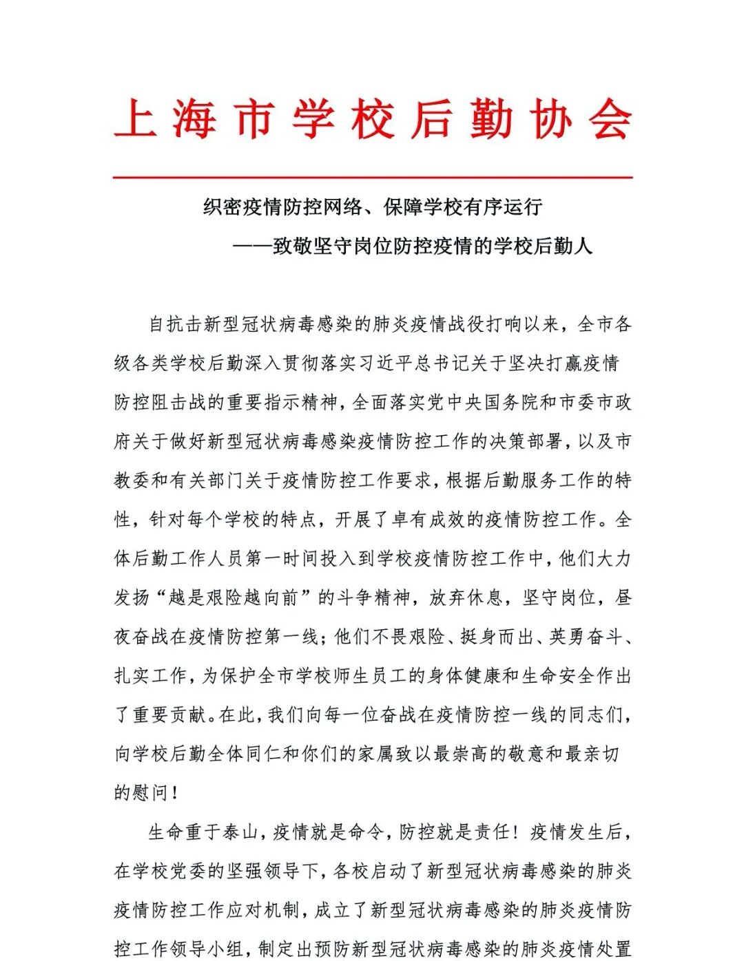 上海市学校后勤协会| 织密疫情防控网络、保障学校有序运行——致敬坚守岗位防控疫情的学校后勤人